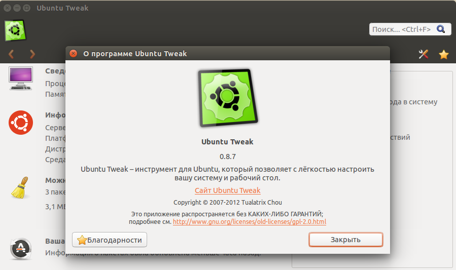 Ubuntu Tweak – инструмент для Ubuntu, который позволяет с лёгкостью настроить вашу систему и рабочий стол.