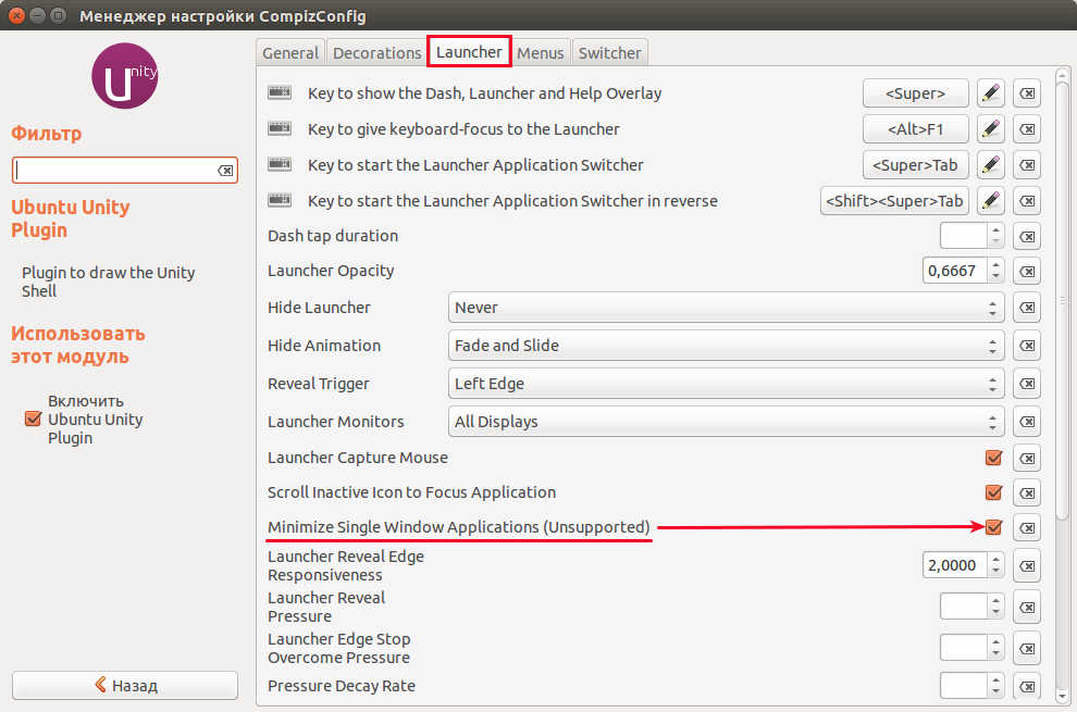 Unity Tweak Tool – специальная программа для настройки окружения Unity:
